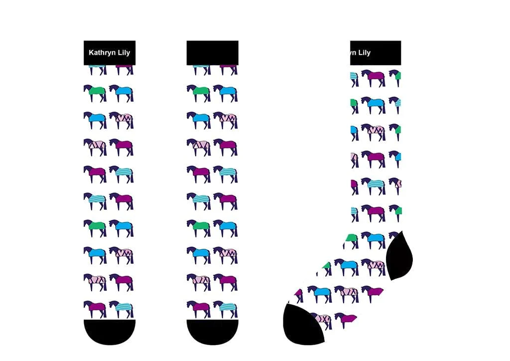 Socks for the active rider, soft yet lightweight fabric allows for moisture to easily escape, keeping your feet and calves dry during your ride. A smooth and contoured fit allow for less bulk in paddocks, tall boots or half chaps. Don’t forget to check out the matching belts and bows! Available in small and medium sizes.