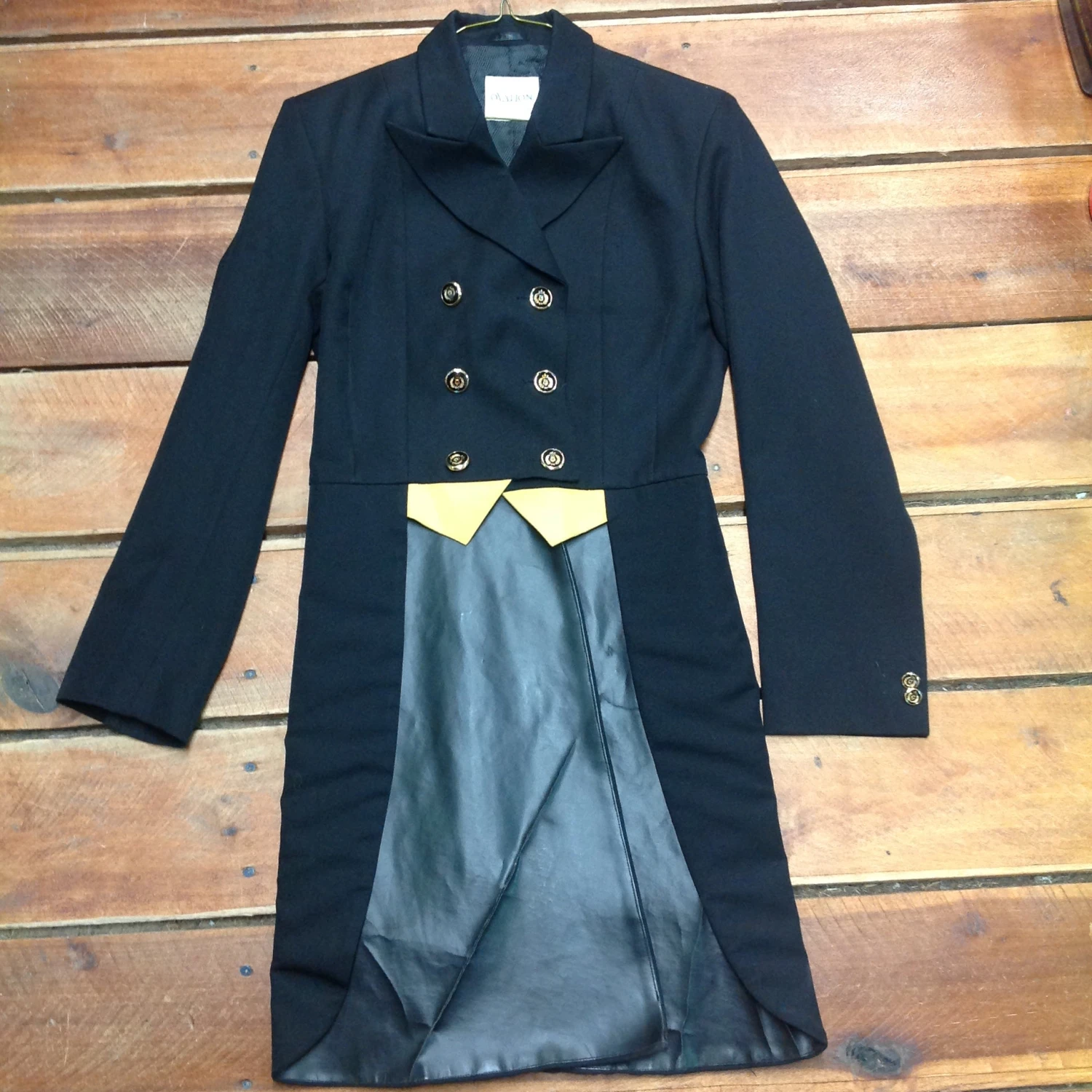 Woven polyester fabric and machine washable. The Ovation® Ladies Dressage Shadbelly is a beautifully tailored easy to care for woven polyester fabric shadbelly. Lined tails, gold points.