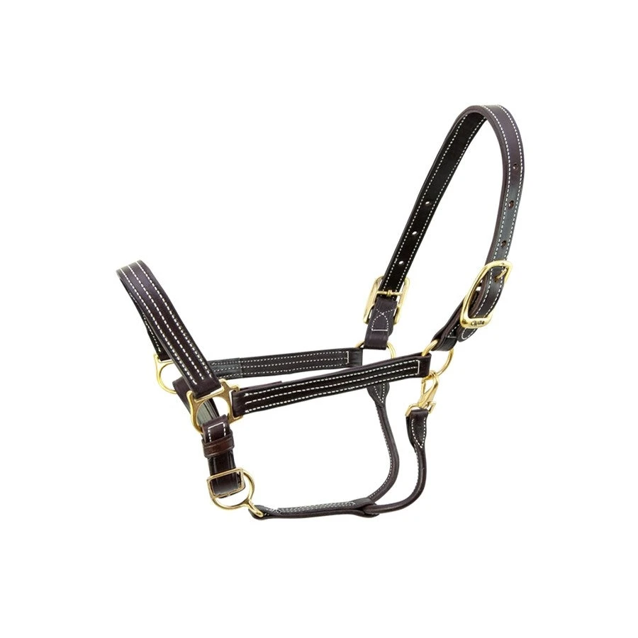 This horse halter mirrors the #1 selling British Halter but offers an adjustable chin. 1″ wide and white triple stitched it has a timeless look.